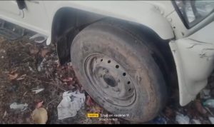 गाड़ी के दो नये टायर गायब थे उनकी जगह पुराने, सड़े हुये टायर लगा दिये गये थे कुल 67 बोरी धान में से 4 बोरी कम पाई गई